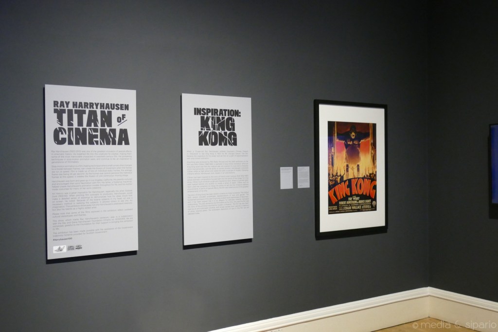 Nel 2021 Luciano è stato ad una mostra dedicata a Harryhausen alla National Galleries of Scotland, a Edimburgo. La mostra si è conclusa il 20 febbraio 2022 e non è più visitabile, ma qui inserisco alcune foto che mi ha mandato Luciano. In una di esse si può vedere la simpatica civetta meccanica di Scontro di titani, che mi ha sempre ricordato un po’ R2-D2 di Star Wars per il ruolo che svolge nel film.